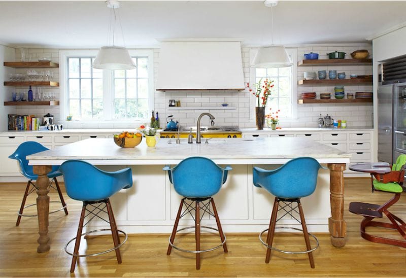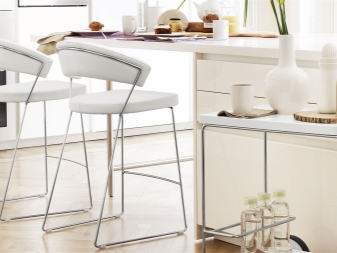 Models with a forged back and armrests, leather upholstery will be a good option for classic or retrokukhni. Metal stools with a soft seat fit perfectly into the modern style of the interior. Lack of backs visually and practically saves space in the room therefore, they are the main choice for small spaces.
