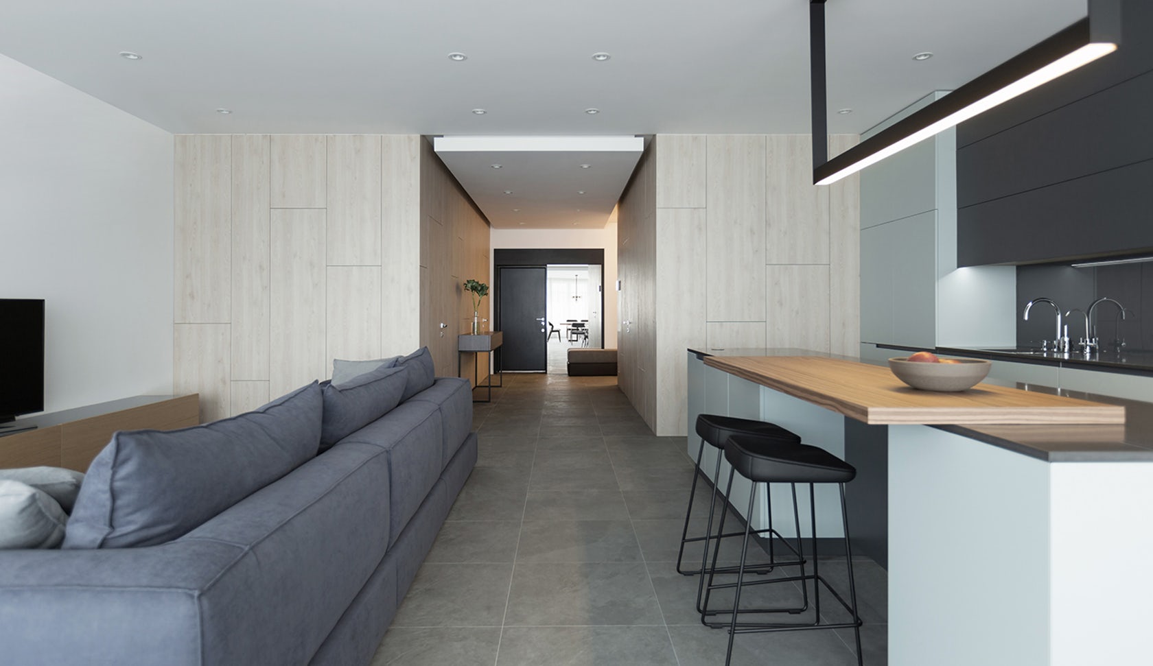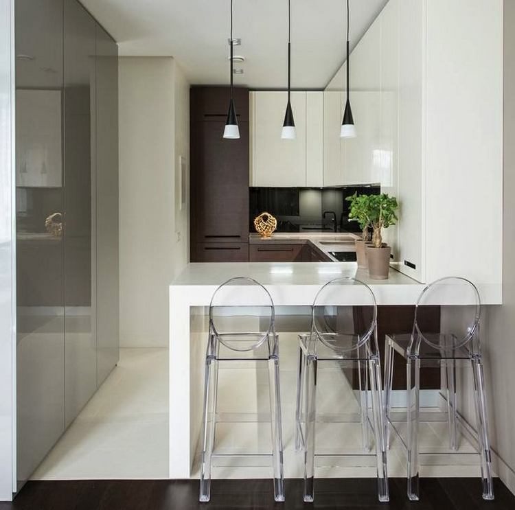Semi-semi-chairs fit well into modern studio apartments, where the bar counter is a kind of demarcated space.