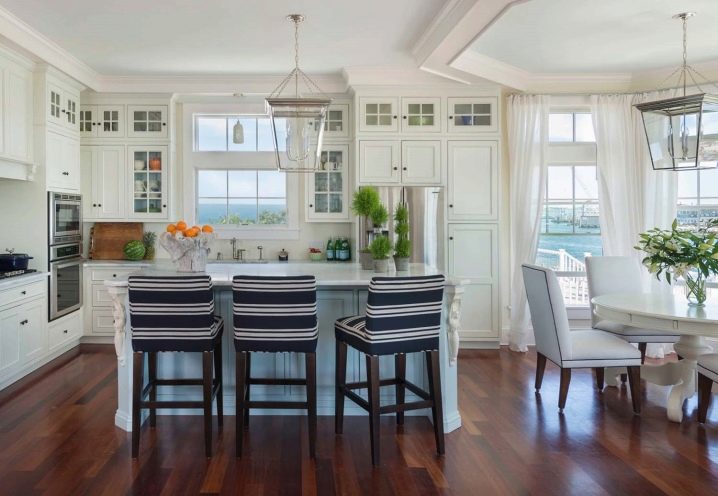 Scandinavian and navy style "Prefers" wooden models of light colors. For the sea interior, you can add furniture with a textile pillow on the seat in blue tones.