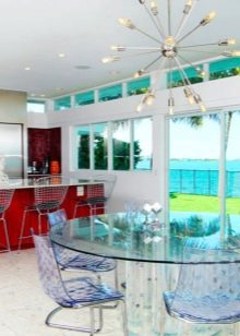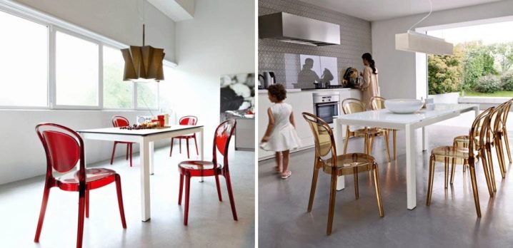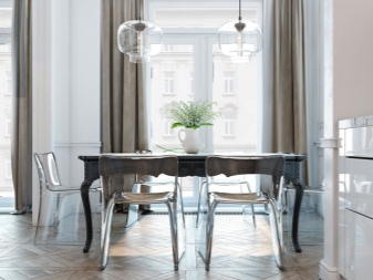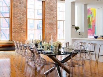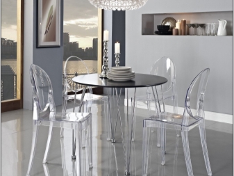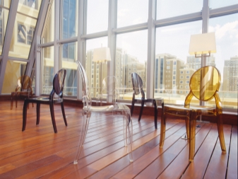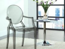 Many manufacturers try to keep up with the times and offer to the attention of buyers interesting and stylish furniture models. Among them can be distinguished and transparent chairs. Often they are made of plastic. This is not the low-grade raw materials used on beaches and street cafes. The composition of such furniture includes high quality materials that will last you a long time.