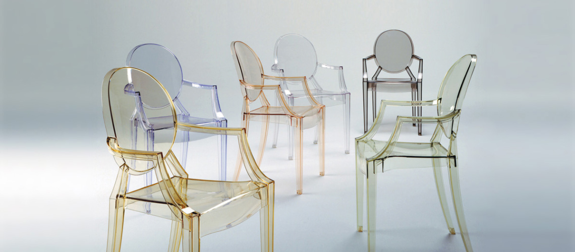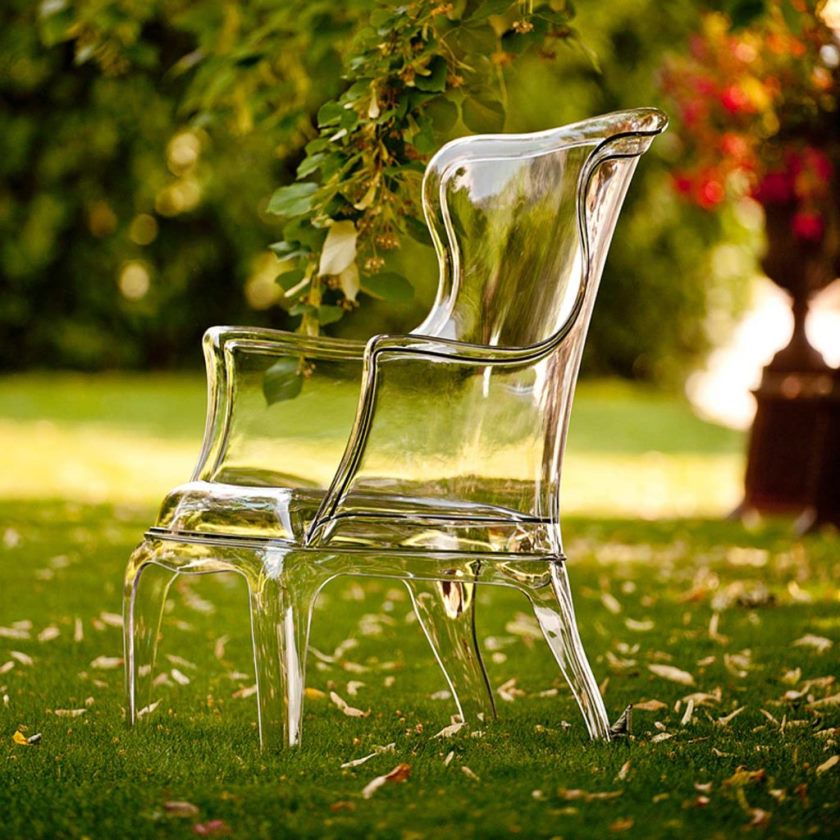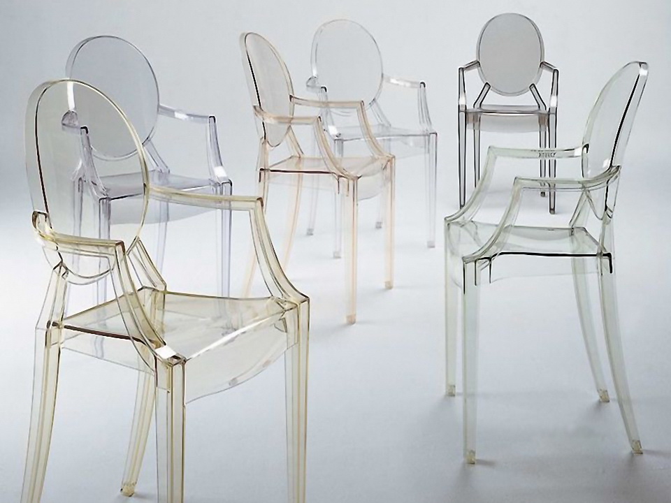 Interestingly, the very first transparent chair was created by designer Philippe Starck from France. His creation, he called the "Ghost." The product was made of polycarbonate, which is transparent. The shape of the chair was similar to that of the Louis XV era. If you casually cast the eye, then in space you can not even notice it. In 2002, these models have already begun to appear on sale.