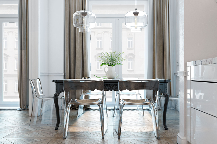 - The ability to visually expand the space. It is not a secret that light tonalities, and even more so transparent chair, are able to visually enlarge the space. This will be especially true for small rooms,small apartments that do not have extra square meters.