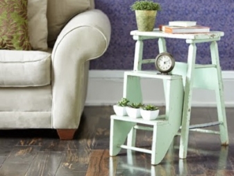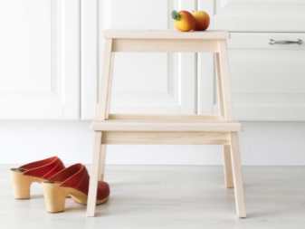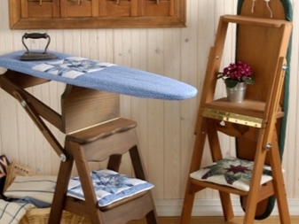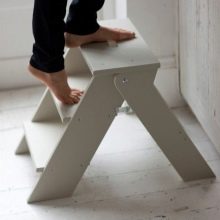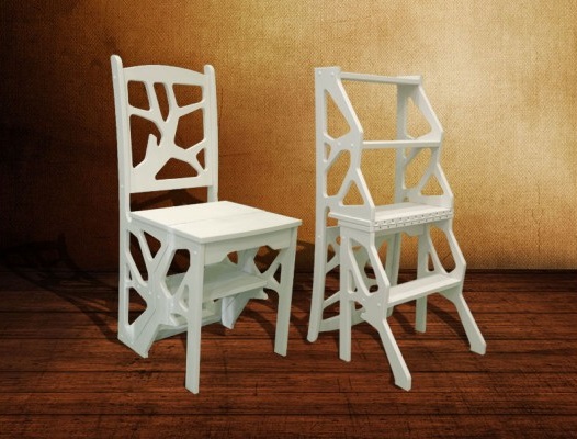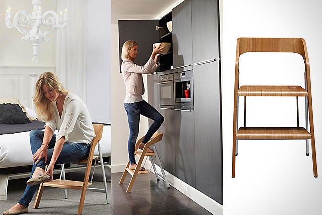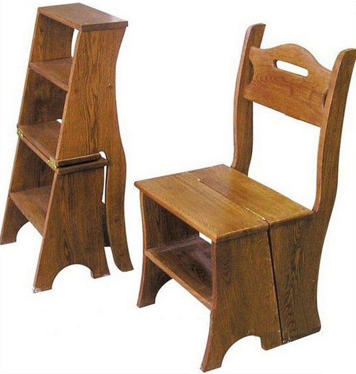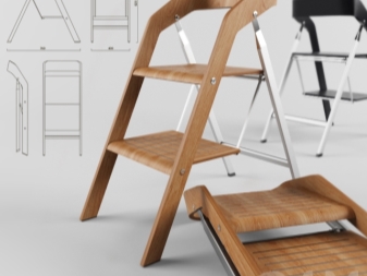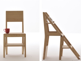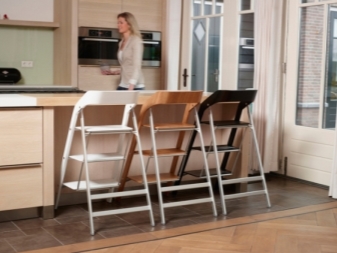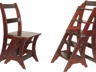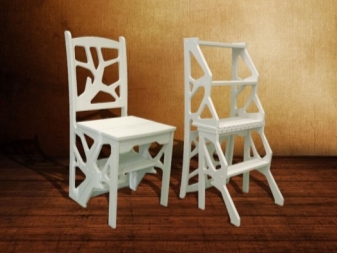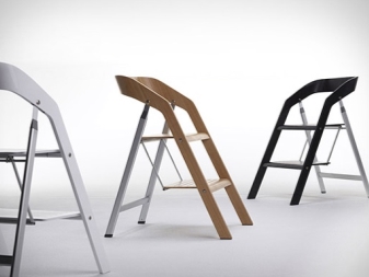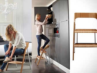 Step-chairs can be in the form of stools, and bar stools with retractable steps. Also designed folding models, where part of the design folds and turns the stairs. When choosing such products, you can be guided by how organically it fits into your interior, whether it is comfortable to sit, and to what height you will need to climb.
