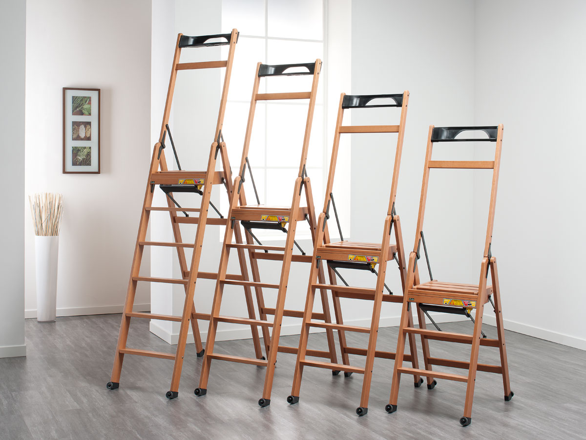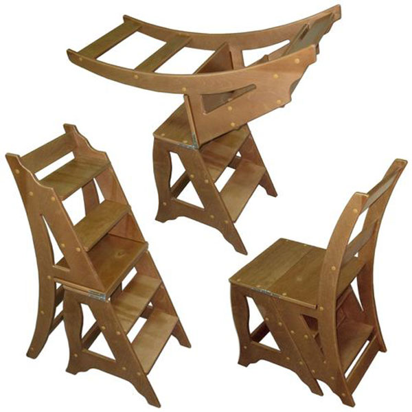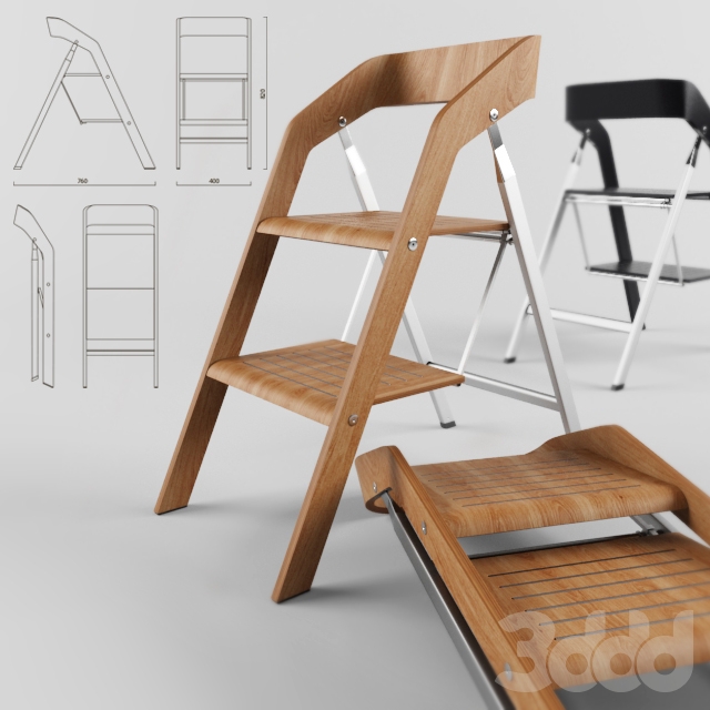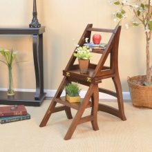 - Chair stepladder. In an apartment, there is often no need to climb to a great height just to change a light bulb or to remove a thing in the mezzanine, but there is no possibility to store a bulky staircase on the balcony or in the closet. And here the step-ladder chair comes to the rescue. Most often presented folding models, so it is convenient to store and their dimensions are very small. These chairs are made of wood, or its combination with metal, as well as in economical options combine plywood or plastic with metal.