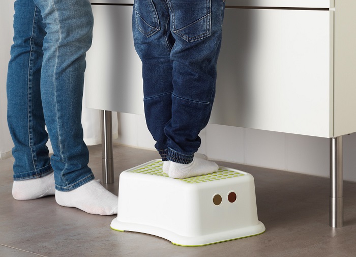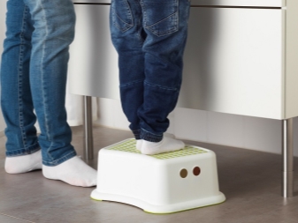 - Coasters. A small child cannot reach the sink to wash his hands. In this case, a huge assortment of small-sized plastic stands with the image of heroes of fairy tales and famous cartoons is presented in stores. Such a thing will decorate the nursery and will be an additional seat for a small resident. And sometimes an elderly person simply cannot climb onto a chair or stool, or even balance on a ladder. Here a metal stand with a rubberized coating is useful, so that the foot does not slip off it. With such a thing you can always reach the top shelf of the kitchen cabinet, or climb into the bathtub with comfort.