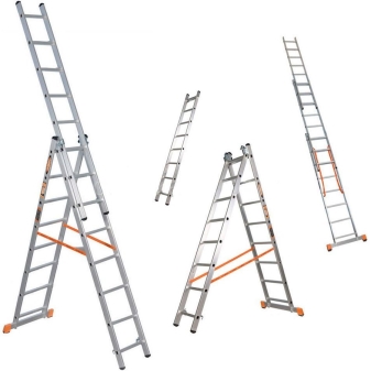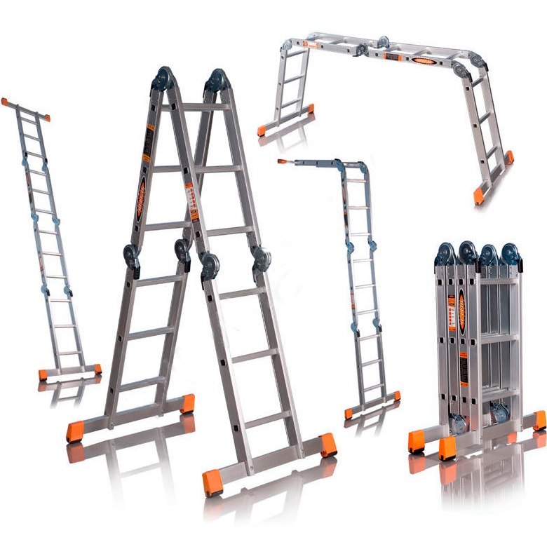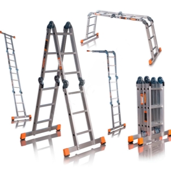 In the folded state, the transforming ladder will quietly fit in a shed or garage. They are made of metal. In everyday life, aluminum constructions with steel parts are more common.