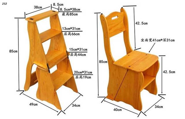 Each type of lifting mechanism has its advantages and disadvantages. A plus of the step-ladder chairs is their appearance. No need to figure out where to hide them in the apartment. The wooden seat is very comfortable. But then there is also a minus - such a device must be used carefully and carefully, since during repair, painting and decorating it is easy to spoil its original look, scratch, stain, and then the product will lose its decorative function.