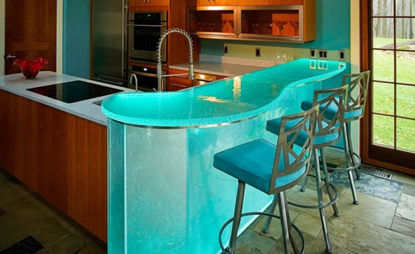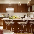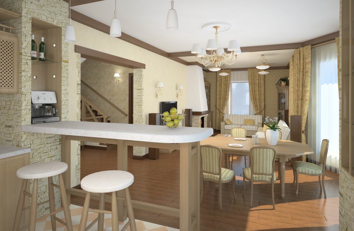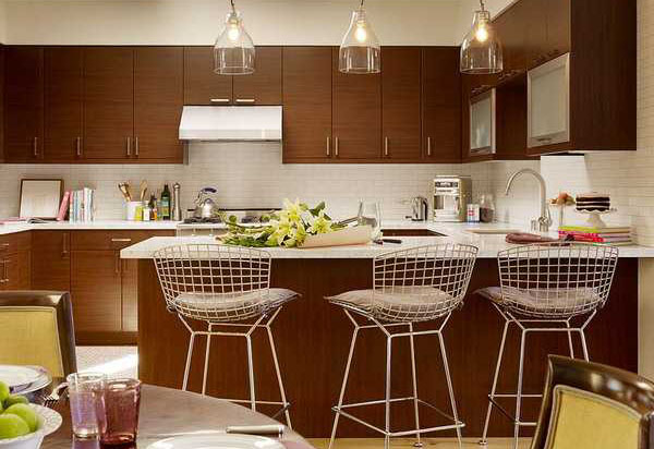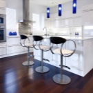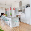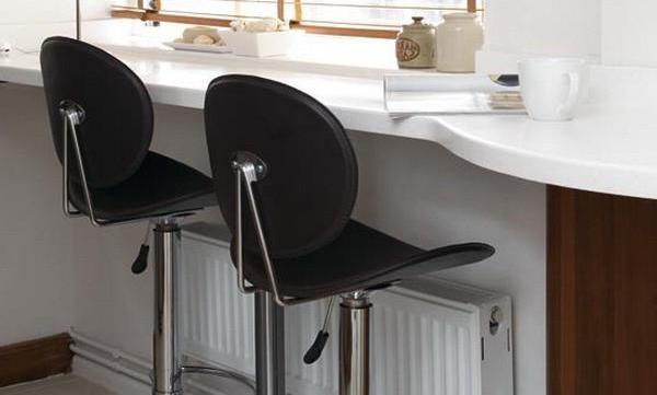 Most often in the kitchens of residential apartments set bar counters up to 90 cm high - this helps to eliminate differences from the working surface. For such racks ideal semi-bar chairs with a height of 65 cm or less, if the table top is at the level of 80-85 cm. The main rule is the distance from the chair seat to the table top should not exceed 30 cm.