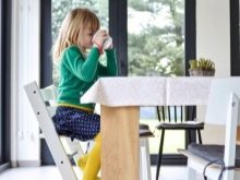 They differ in the increased durability and long service life. Stands must be present in the design - you can comfortably place your legs on them so that they do not hang down without support, because in such a position it is inconvenient to sit, and especially to eat. The thrust element is connected to the legs of the chair or seat, becoming one with it.