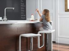 Height-adjustable bar stools are a versatile kitchen option. Products are easily adjustable, due to which adapt to the height of the rack and the growth of people. Such models are suitable for families with children in the sense that the chair rises to the optimum height so that small fidgets also have the opportunity to sit at the bar counter.