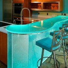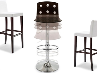 The first models are suitable for bar counters with a height of 110-115 cm, and the second - for racks with a height of 120 cm or 130 cm. This is the standard height for solid chairs with a rigid frame. Such criteria are used for the manufacture of serial furniture. By the individual order it is possible to create a product of any height and configuration.