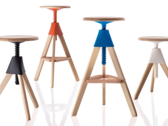 Adjustable seat height due to the screw mechanism: the rise is carried out by turning counterclockwise, and the descent - clockwise. This mechanism is more common in the furniture of wood, hiding in the leg or remains outside as a decorative element. Exotic variants include models whose height is fixed by a peg.