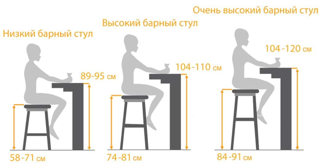 In determining the height of the furniture, the average growth of people, postures in which the person will sit, and the dimensions of the bar counter are taken into account. All manufacturers comply with the established the standard that serves as the basis for the separation of chairs into two categories: