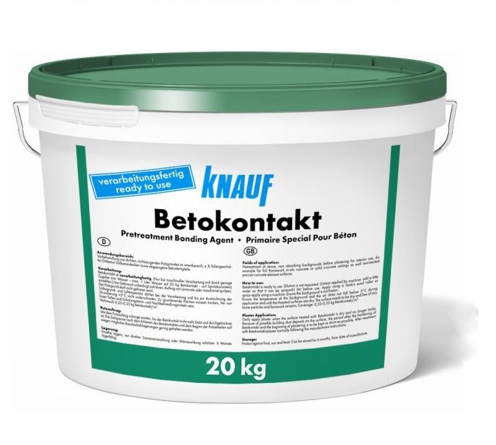 - Knauf. This manufacturer has proven itself. He has long been offering his products, which is characterized by consistent quality and reasonable price. This also applies to concrete contacts. Specifications remain at an average level: setting time - 3-4 hours, consumption - about 350 g per 1 square. m