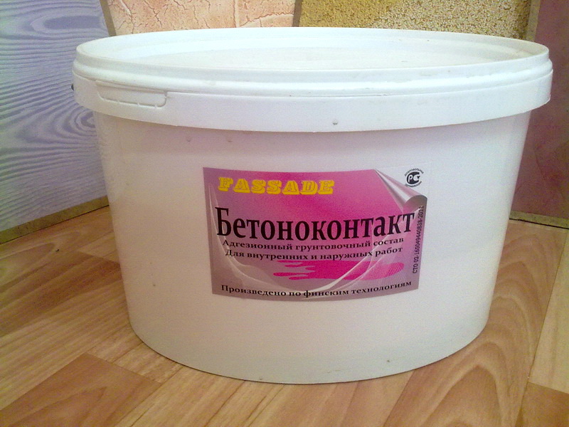 - Versatility. This means that concrete contact is used for processing various internal surfaces. For example, it can be applied even if the old finish layer has not been removed. Betonokontakt perfectly keeps on oil or acrylic paint, whitewash, drywall, concrete, iron or wood surfaces and even glass.