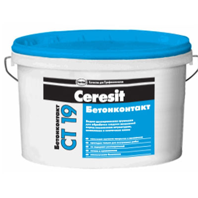 - Ceresit. Concrete from this manufacturer applies to those that can not be applied with a roller. Here it is imperative to use a brush. It is worth mentioning that this material has a water-dispersion base, and not acrylic.For this reason, it should not be allowed to mix with water: the concrete-based primer from this brand is water-soluble.