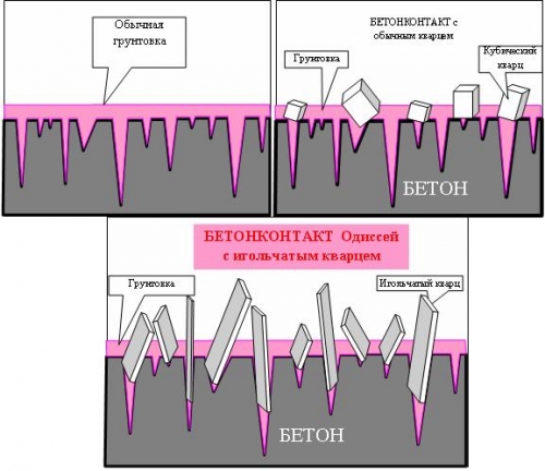 - Needle quartz flat. They fall into microcracks, penetrating them almost to the very base.Thereby, the concrete-contact primer is held much better on the surface, and the new coating is fixed more reliably.