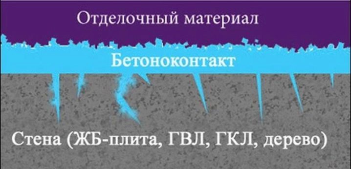 Primer concrete contact is designed to bond between the surface is absolutely incompatible. It can be used to attach new ceramic tiles to old ones, for example. It improves the adhesive characteristics of smooth surfaces, so that the adhesive can hold other coatings on them. And this applies not only to smooth materials, but also to all others, from concrete to wood. Contact between the material covered with concrete-based primer and the new coating will be optimal.