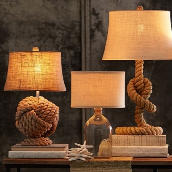 - Knitted options. If such models used dense yarn, then they will look a little rough. In this case, lamps with dense knitted caps can be successfully entered into the loft room. For more romantic natures, you can choose openwork patterns.