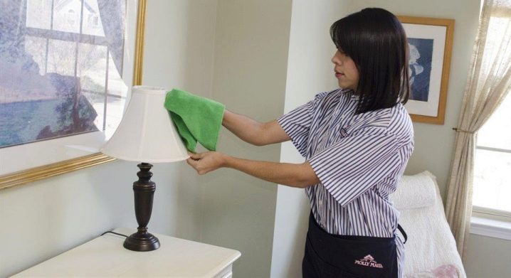 When used correctly, the floor lamp will serve you for a long time. It is necessary to periodically care for the lampshade, remove it and clean it. If it is a glass cap, then it will be enough to wipe it with a napkin, which is pre-saturated with an antistatic agent. Fabric options can be cleaned with a vacuum cleaner, putting on a special nozzle.