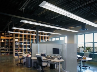 For office and industrial premises, such luminaire models are selected that are protected from moisture and dust. Details of such lamps are connected very tightly.