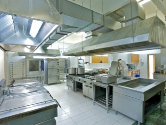 - The kitchens of the restaurant should have good illumination, so fluorescent lamps, compactly mounted on the ceiling are ideal.