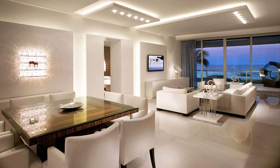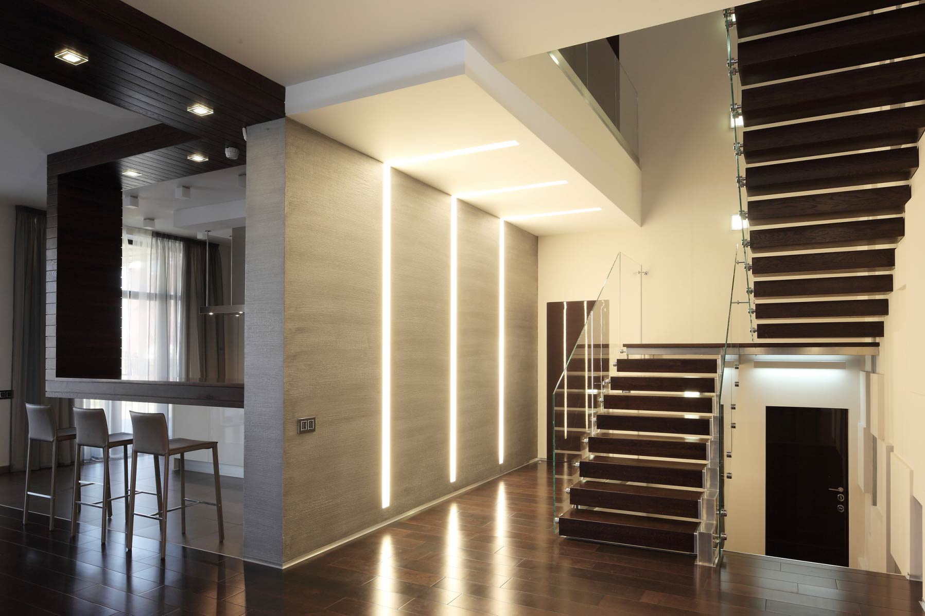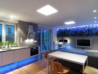 - The most appropriate and common direction of the interior for such lighting is the style high tech. For him, appropriate long lamps installed at the junction of the wall and ceiling, emphasizing the geometry of the room. The light of such products, as a rule, is cold.