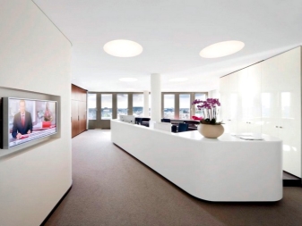 The most popular types of structures are prism and microprism, honeycombs, pin-spot and opal diffuser, which is made of frosted glass and is an unusual detail of the interior.