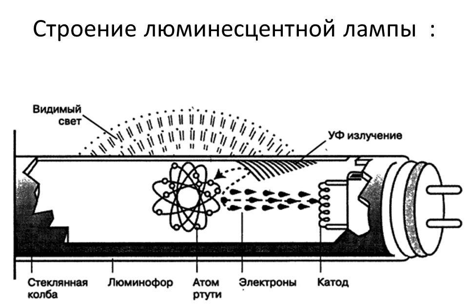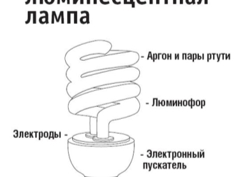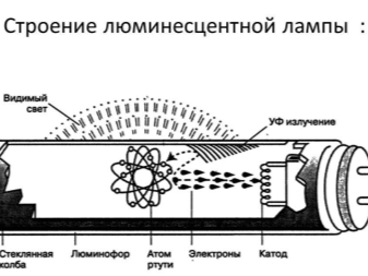 Before buying, it is important to understand the structure of the fluorescent lamp. The design is filled with an inert gas containing mercury vapor. Inside the lamp is coated with a phosphor - a special luminescent compound.Along the edges of the device is equipped with spirals of tungsten coated with barium oxide. Such cathodes are connected to pins connecting the structure with an external power source.