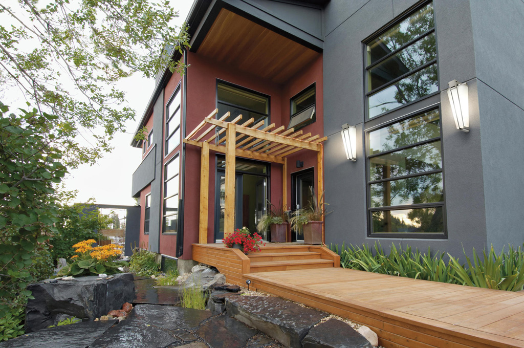 - Eco-design sometimes allows the use of warm daylight to create harmony between the natural texture of materials and plants.