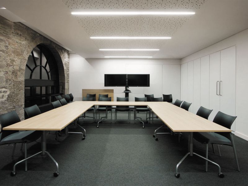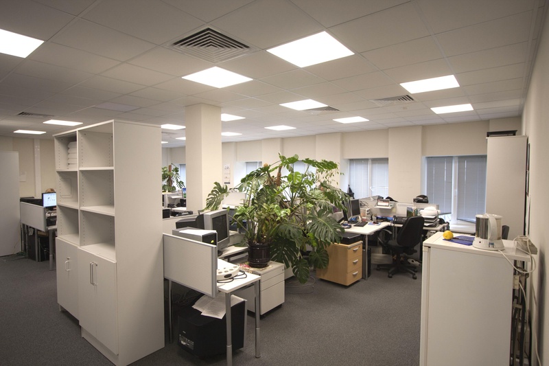 - Office rooms use fluorescent light embedded in the ceiling to save on electricity and provide comfortable working conditions for all employees.