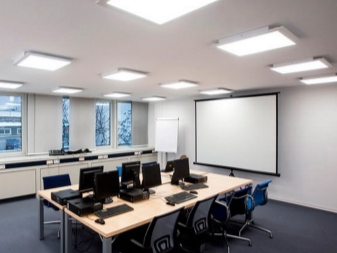 - Rectangular. Most often this is a linear option. It includes a large number of LEDs. These are the largest overhead designs.