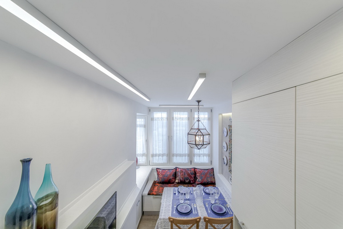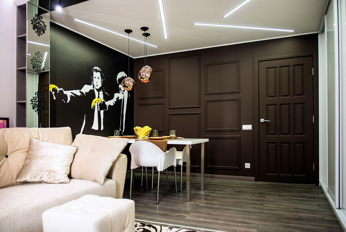 Dot LED lighting is very often used in studio apartments. They share different functional areas and help to place light accents. There are also kitchen models that allow you to separate the work area from the dining room.