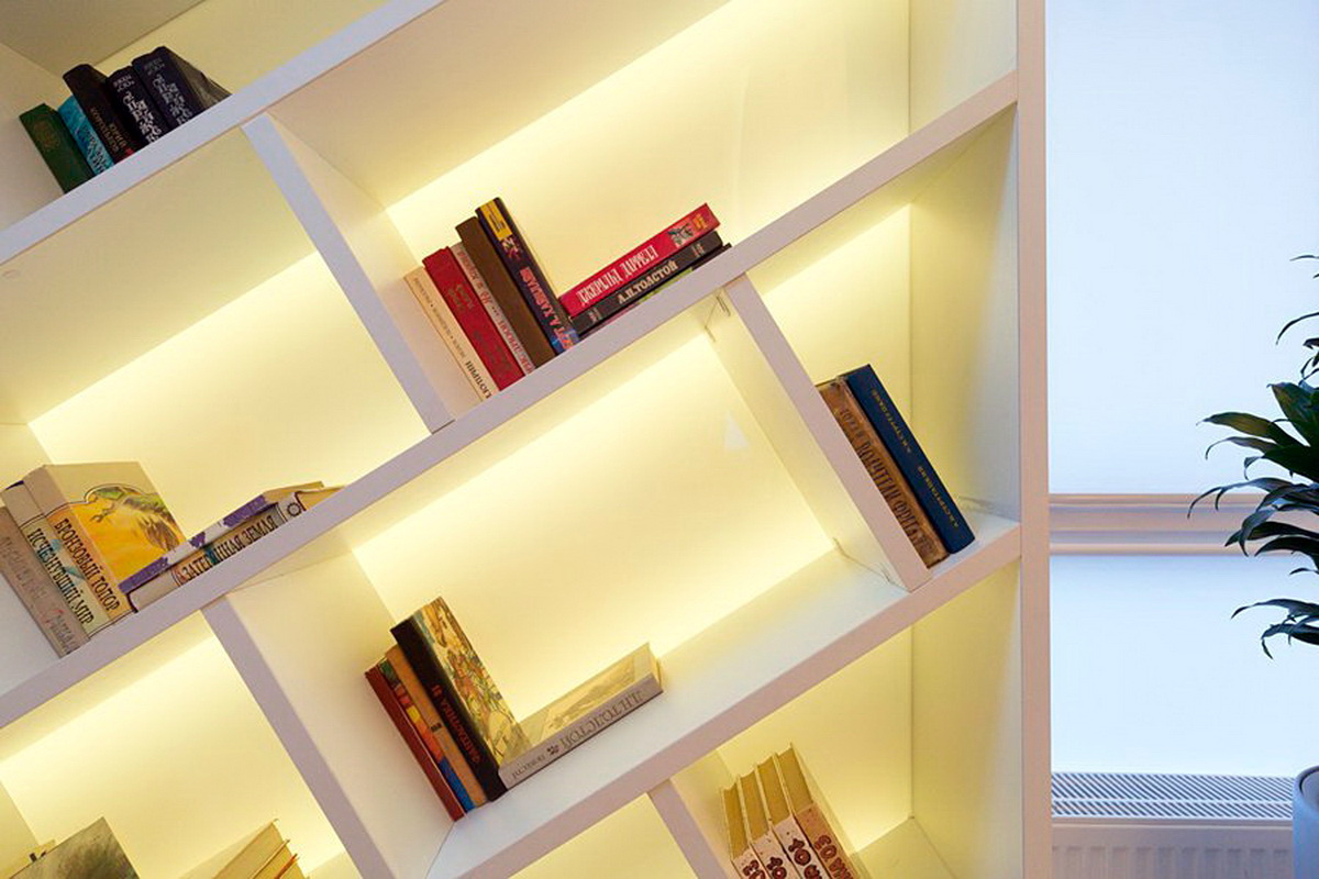 Such lamps in the interior are very often used to highlight any area of the room or an interesting thing. They can highlight the antique clock, a wall with a beautiful dinner set or a modern sliding wardrobe. This is an unusual decision that will diversify any interior.