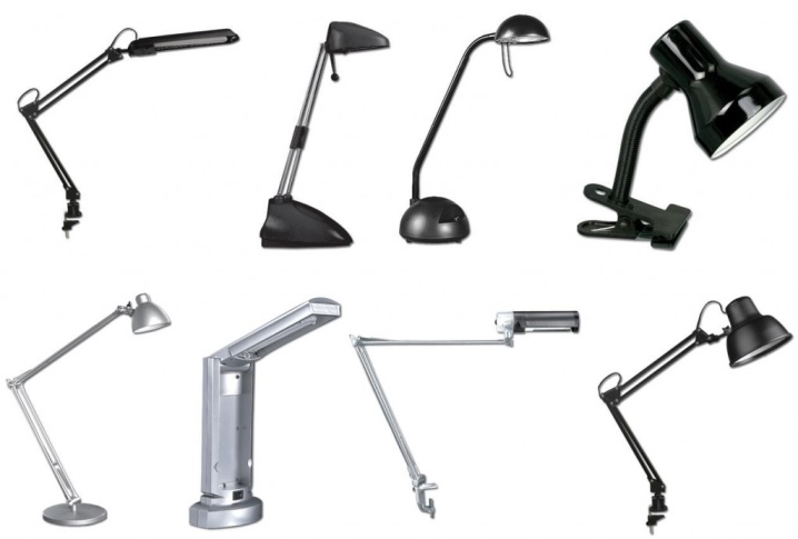 Selection begins with determining the desired location of the lamp. Table lamps with fastening can be located directly on the table top or on the wall above the working area. For the first case, lamps on a clamp, a clothespin or a suction cup are suitable. For the second - on the bracket.