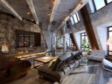 - Modern apartments and loft-style houses are also, as a rule, quite spacious. In such a room should be a lot of light. Designers try to select different lighting options, starting with classic pendant lamps and ending with floor lamps and LED lamps.