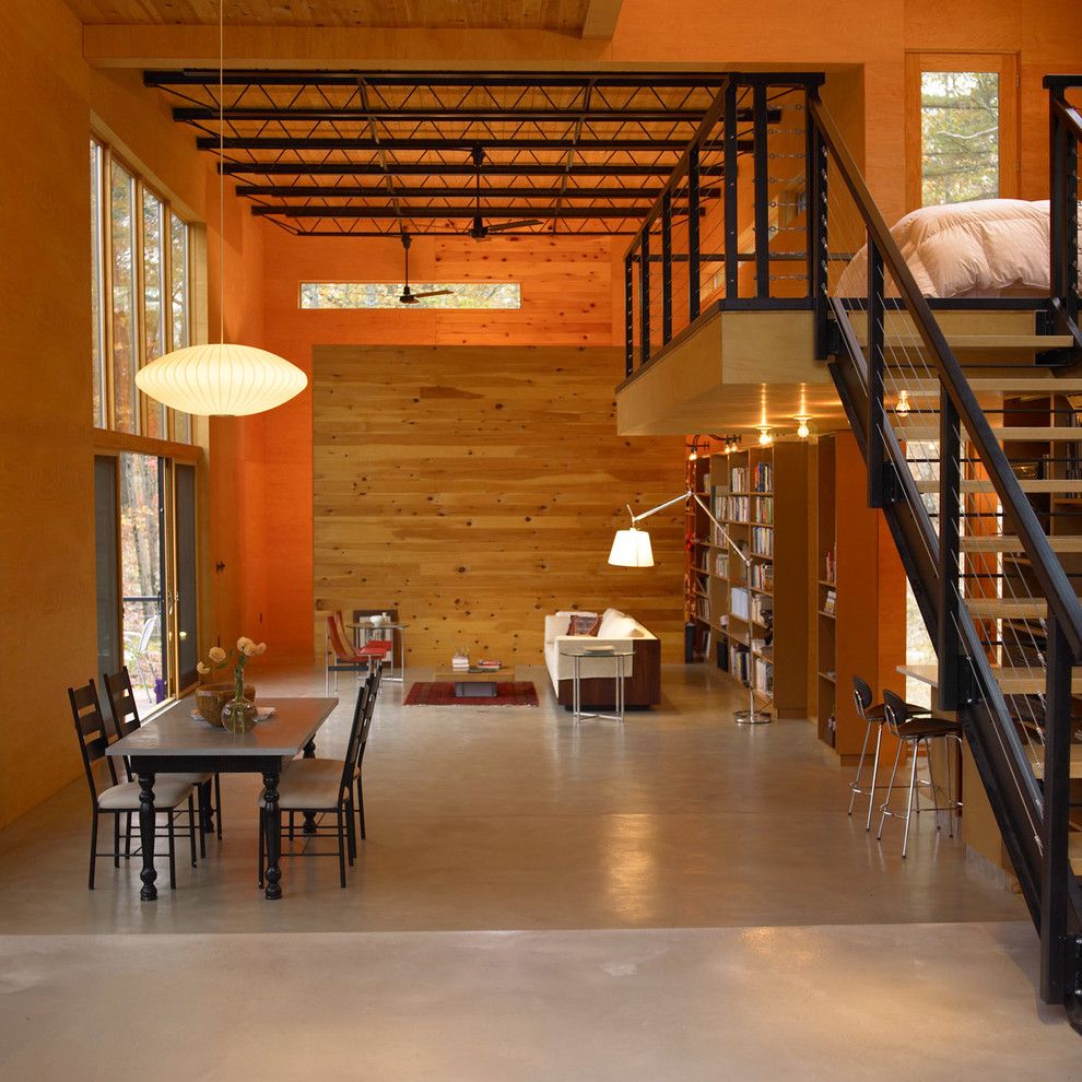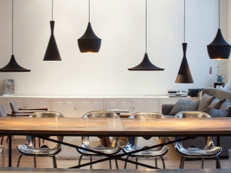 - Very often, a loft-style room is a combination of several rooms. The living room or dining room can be connected to the kitchen. In this case, the lamp should be bright and illuminating both rooms at once.