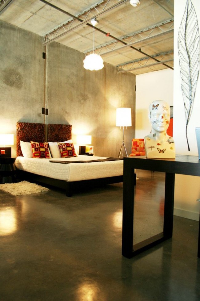 Bedrooms, as a rule, try to make more comfortable. Even if the room is decorated in the style of a loft, you should still try to soften the interior. Ceiling lamps in such a room, as a rule, are attached to fairly rigid laces, which makes them very reliable.
