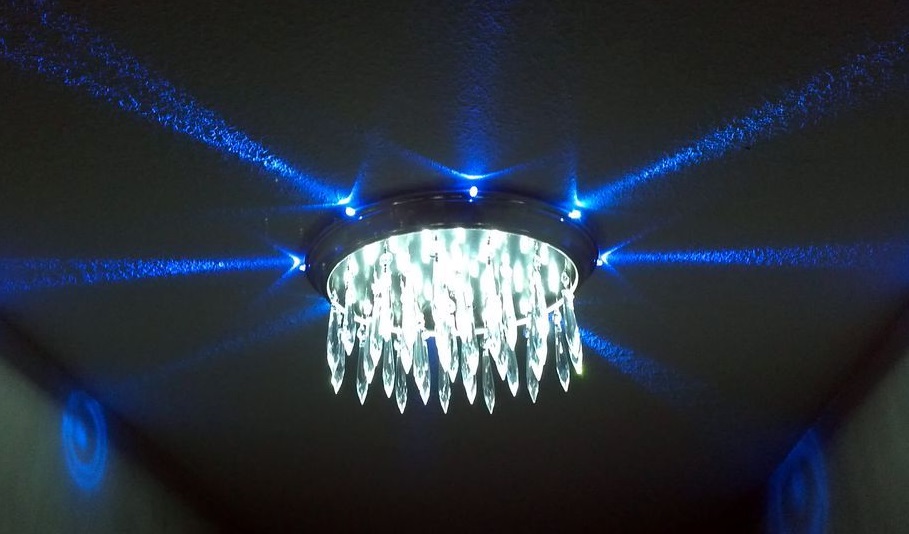 As a rule, all lighting fixtures differ in the type of lamps used. Usually, remote-controlled luminaires operate on the basis of LEDs with a completely new dispersion technology. They are characterized by a small consumption of electricity with a high level of luminous efficiency and a significant service life (up to 100 thousand hours). There are also halogen devices - with the ability to create unique color solutions, fluorescent light sources, their combined versions.