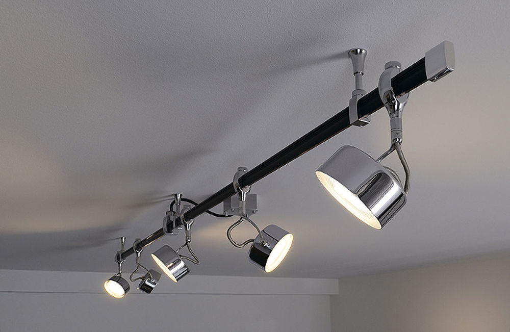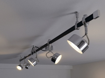 Track lights are created and used to point the accent on a particular object. All of them have a three-phase busbar mount (guide device when mounting track lights), which is attached either to the ceiling or with the help of suspension cables. The track itself is 1,2,3 or 4 meters long, and it can also be adjusted independently.