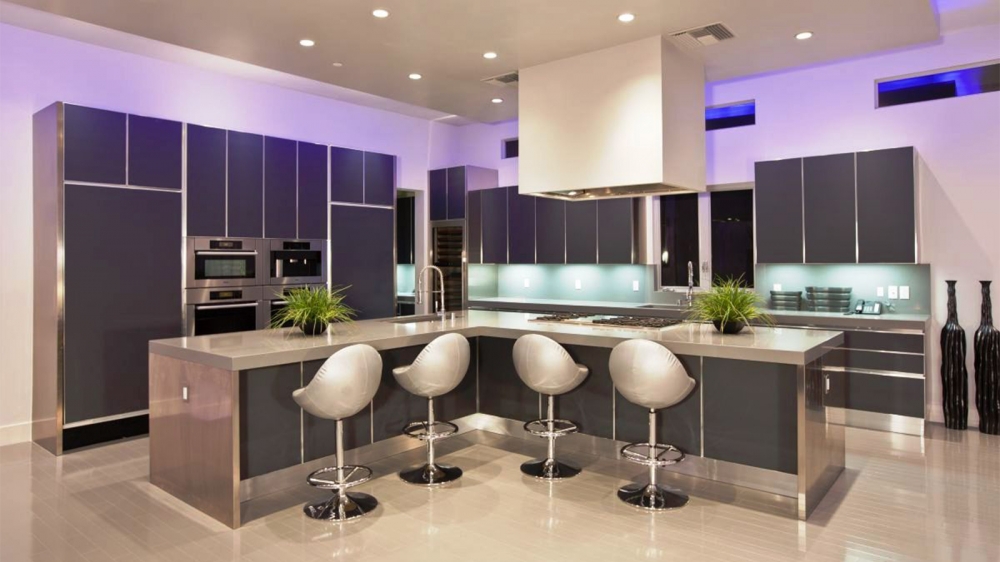In the kitchen, lighting is sometimes built in under wall cabinets or in the ceiling along the working area. It is also popular to install fixtures embedded in cabinets with glass doors, when opened, the light automatically lights up.