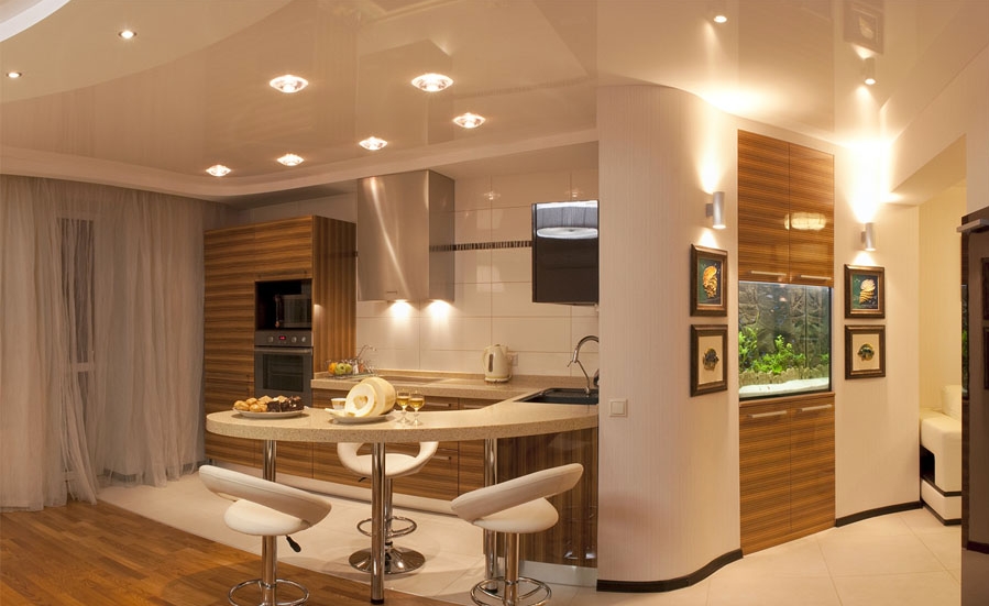 This kind of lighting is appropriate in the living room as well as in the kitchen and even in the bathroom.