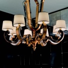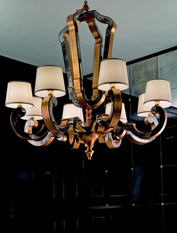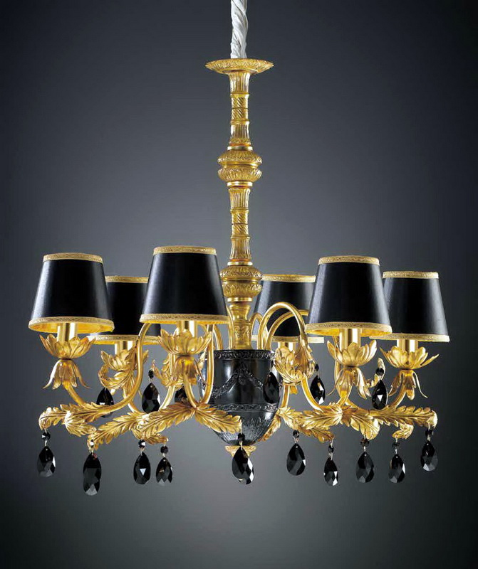With all this moderation, classic lamps are often made from expensive, but safe materials.Bronze, brass, silver and various iron - everything goes into motion when creating amazing light devices of unusual shapes. Goes, but in moderation. There may be lace curls, and leaves, and flowers made of metal. Wood is sometimes used. Ceilings are also designed with the help of soft textiles, for example, organza, leather and even silk.