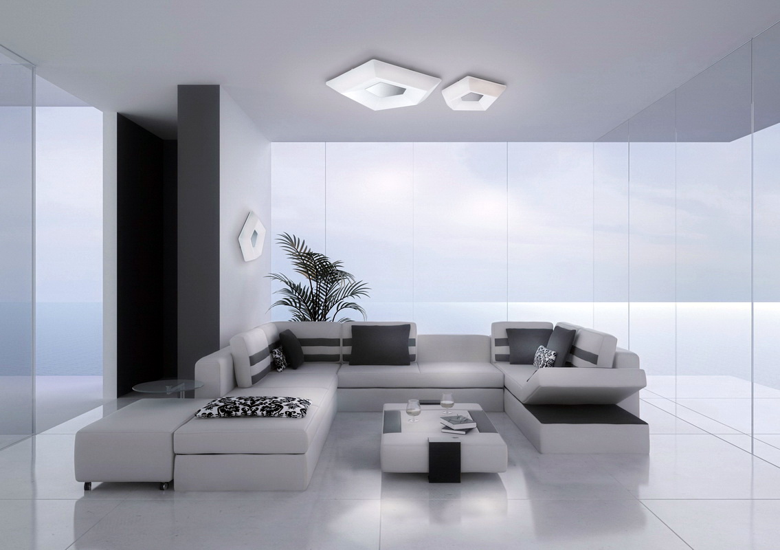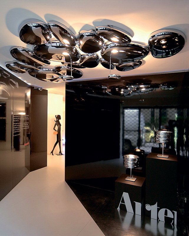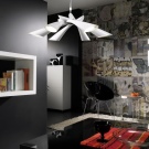 Techno-style lamps look very well in the modern living room, where there is a copious amount of metal parts.