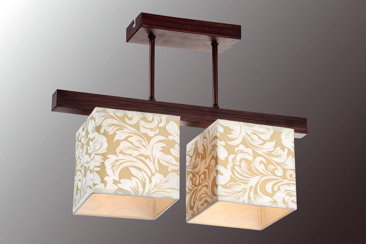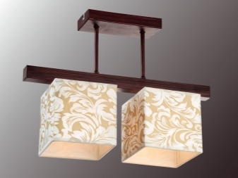 Models of such lamps in a rustic style will appeal to lovers to relax in the country. Or they will do if the interior of the house is made directly in the style of "country". In the creation of such light devices often use natural wood, while the master does not make any complex forms. There can be aged plafonds, which beat this style very favorably. As for the flowers, it is mostly pastel.