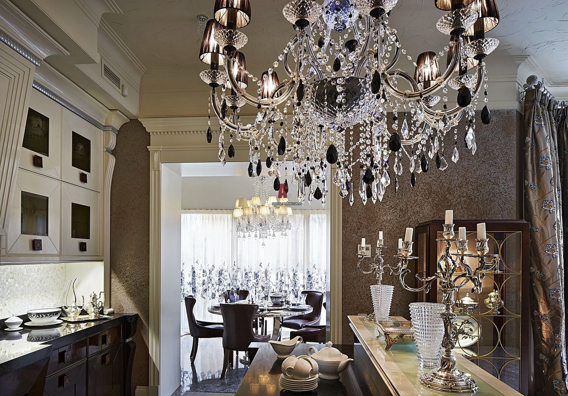 Lamps of this type can easily organize the palace atmosphere even in small apartments, although it is best to give preference to more space. The name itself speaks for itself. Baroque implies lush, bright, massive and luxurious chandeliers and lamps that will not leave anyone without attention. Often decorate such fixtures with crystal. Chandeliers in general can be found many-tier, which can be placed only on high ceilings.
