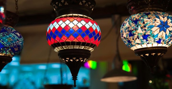 Indian-style lamps are often made in round or round shapes. Thus, the Egyptians are accustomed to worship the sun. The main colors of the chandeliers or lamps are also sunny, sand and gold, crystal and artificial stones are used for decoration. Luxurious oriental lamps can be found in Arabic, African, Indian and Moroccan styles. Often they are made with the help of openwork metal. Some models look really wonderful and allow you to plunge into an oriental tale right at home.