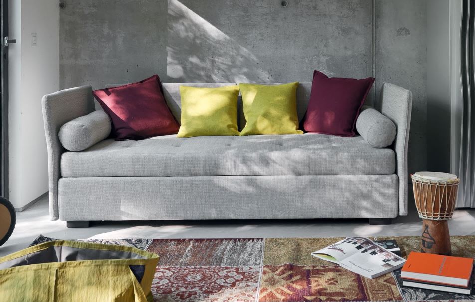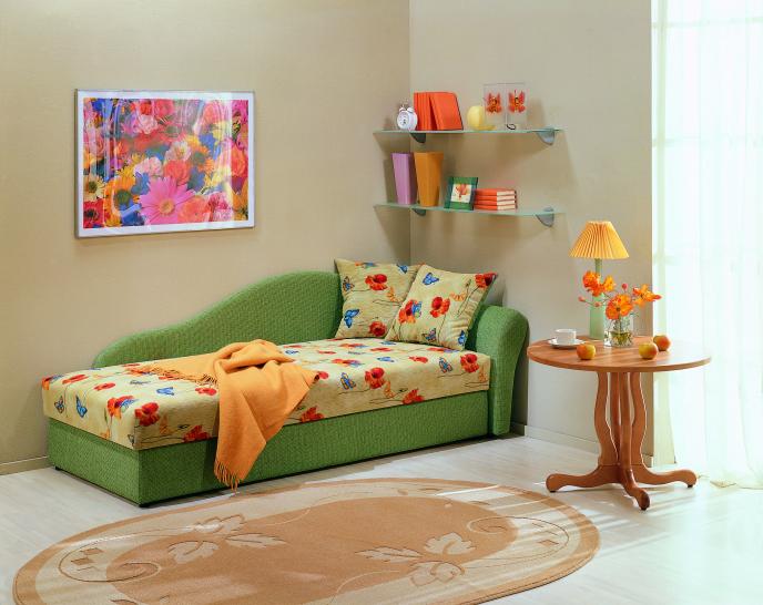 - Ottoman sofa. In appearance, this option resembles a regular sofa with one armrest and a small backrest. It usually has storage boxes, a lifting mechanism and a flat surface. The option of a vykatny sofa in which the berth is hidden is possible. There must be soft rollers that do not scratch the floor. Due to its simplicity, this model of furniture looks good in the kitchen, in the nursery, in the living room or in office space.