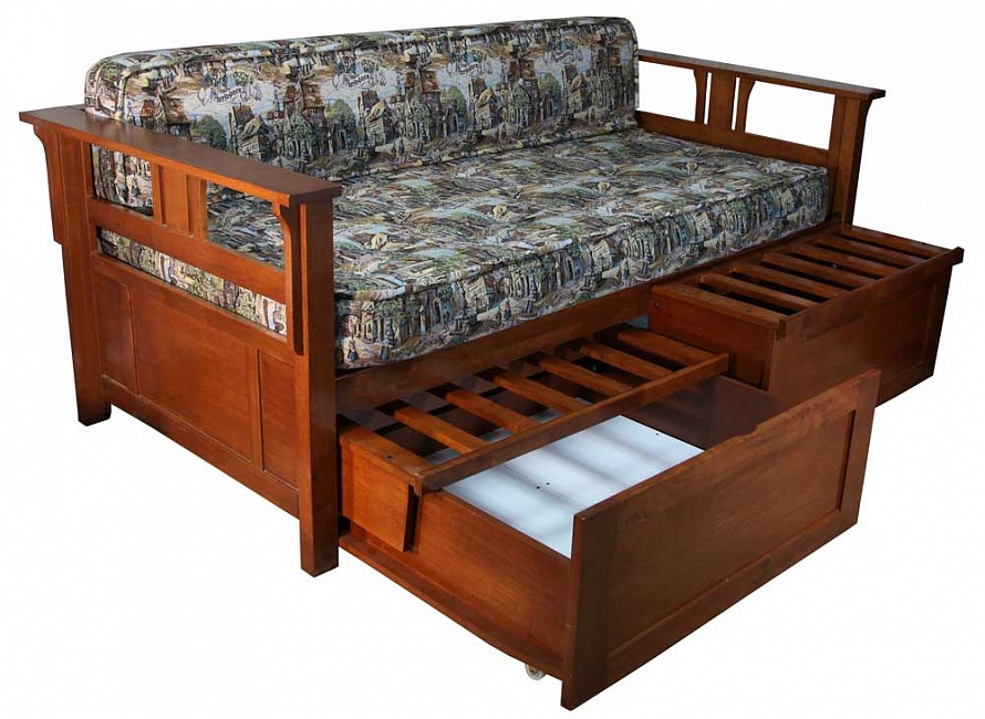 An ottoman is something between a sofa and a bed. Previously, this bed was without a backrest and armrests. Modern models are already available with these elements. Standard dimensions of a single ottoman: 0.8 x 1.8-2.0 m.