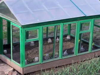 Do not forget about the greenhouses with a metal profile in the frame and window frames at the base. This is one of the most sustainable and durable greenhouse options.